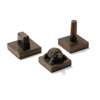 comprising: one cast with a tapered cylindrical finial, engraved with characters on top; one with a cubic finial, engraved 'Du Tong Zhi Yin' on top; and one with a turtle as finial, all scripts cast in a recessed square reserve