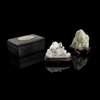 十九至二十世紀 白玉及青玉雕山子兩件(含木座)及 青玉雕太平有象嵌長方木盒