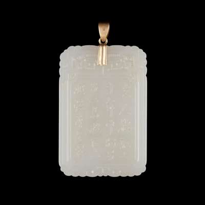 carved on one side with the figure of Lady Xian armed with her distinguish fangtianji- pole arm and a sword, carved on the reverse with a corresponding excerpt from Wu Shuang Pu, the stone of even white colour
