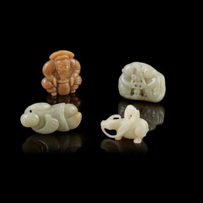 GROUP OF FOUR 'FIGURAL' JADE CARVINGS