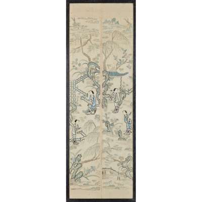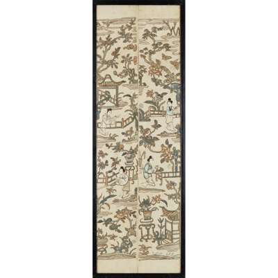 清末民初 各色人物、花蝶紋刺繡掛幅(一組七幅)