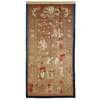 embroidered in the central rectangular panel with the Eight Immortals on the ground, Shoulao- The God of Longevity riding a crane in the sky, all paying their birthday attribute to Xiwangmu- The Queen Mother of the West, on a phoenix accompanied by her attendant holding a large fan over Her head, sides of the border further decorated with auspicious bogu motif, centre of the top with a forward-facing dragon holding a panel 'Long Zhang Feng Gao' flanked by a pair of phoenixes, all against a cinnamon ground