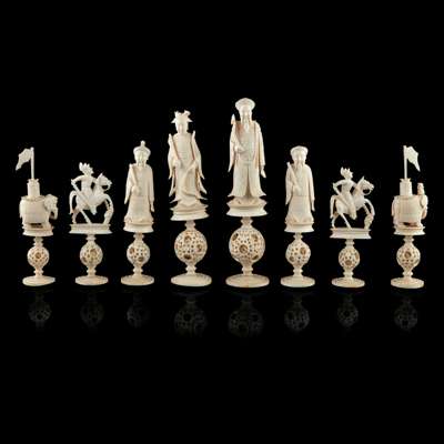 CARVED IVORY PUZZLE-BALL CHESS SET Y