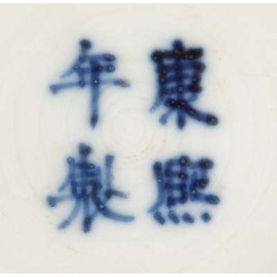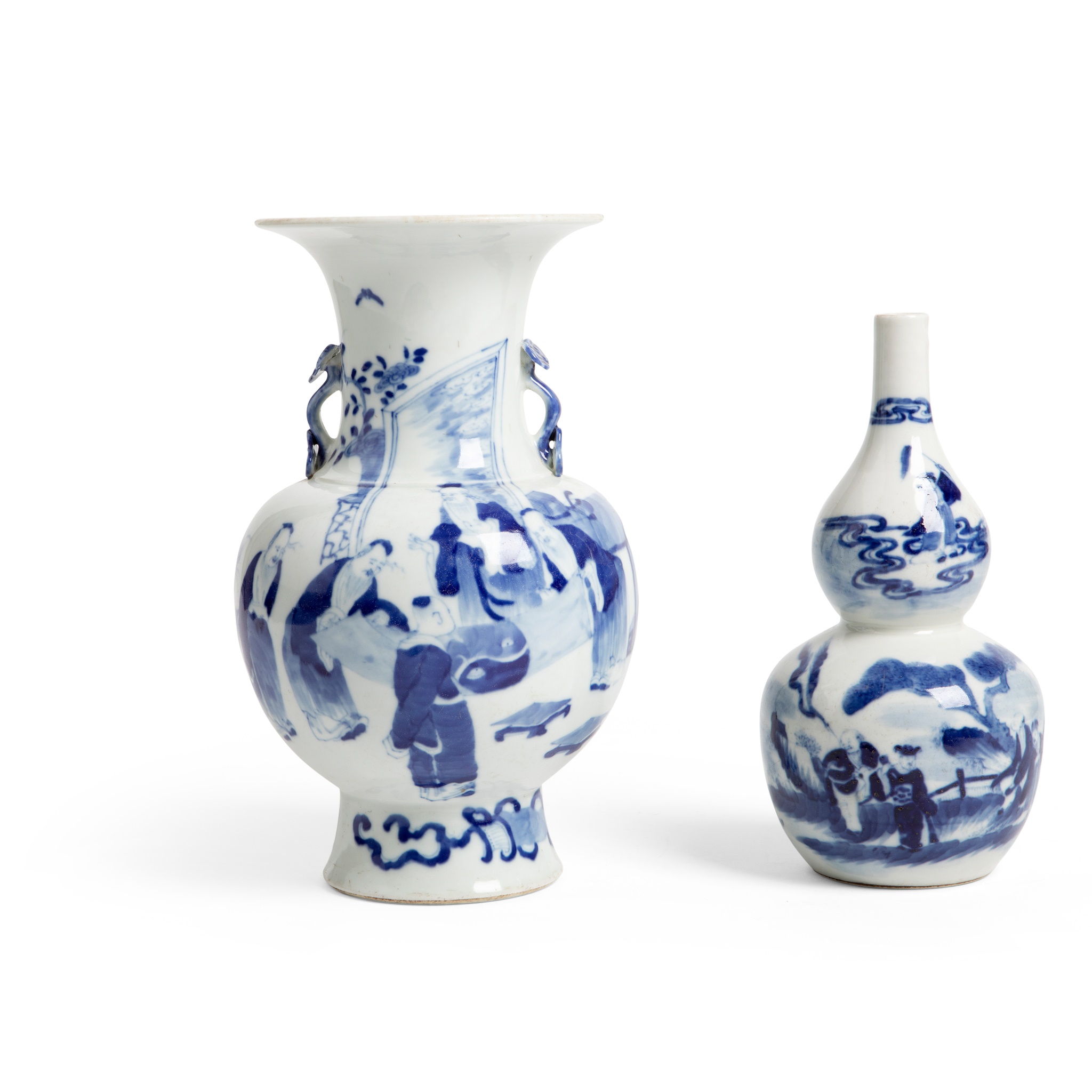 十九至二十世紀 康熙款 青花道教八仙葫蘆瓶 及 高士賞畫如意耳瓶