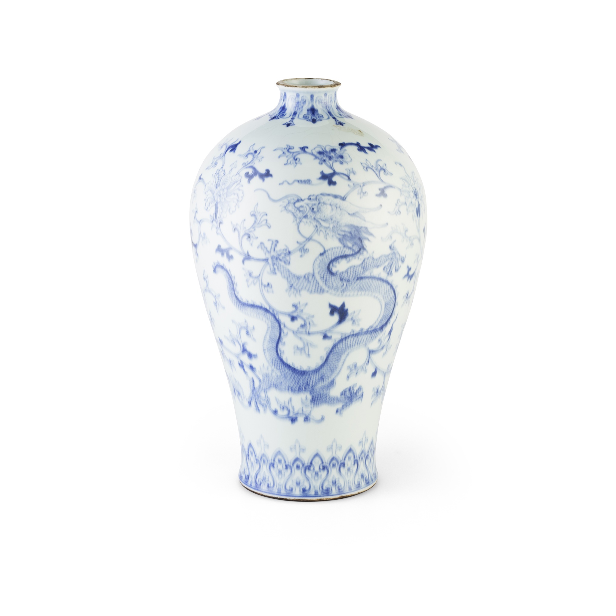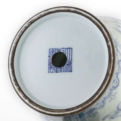 乾隆款或到代 青花穿花龍鳳紋梅瓶