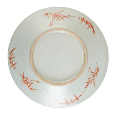 each painted with a shanshui landscape to the interior enclosed by a diaper band further with decorations on the cavetto; together with a 19TH CENTURY, FAMILLE ROSE 'HUNDRED BOYS' PLATE, decorated to the shallow interior with boys in a Chinese new year parade, with a wooden display stand