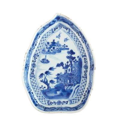 (A PRIVATE SCOTTISH COLLECTION) PAIR OF BLUE AND WHITE PEACH-FORM DISHES