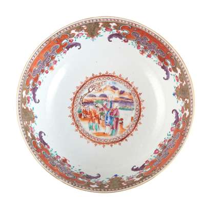 (A PRIVATE SCOTTISH COLLECTION) TWO EXPORT FAMILLE ROSE PUNCH BOWLS