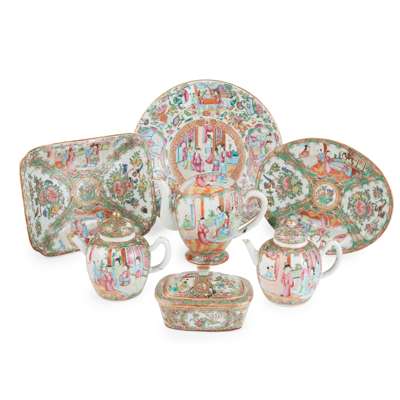 (A PRIVATE SCOTTISH COLLECTION) GROUP OF SEVEN CANTON FAMILLE ROSE WARES
