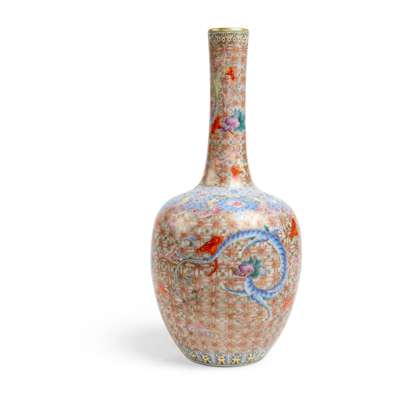 清 乾隆款 粉彩錦地描金龍紋膽瓶