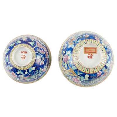 清末民初 同治款 娘惹粉彩 螭龍牡丹紋對瓶 及 乾隆款 龍鳳呈祥紋碗(共四件)