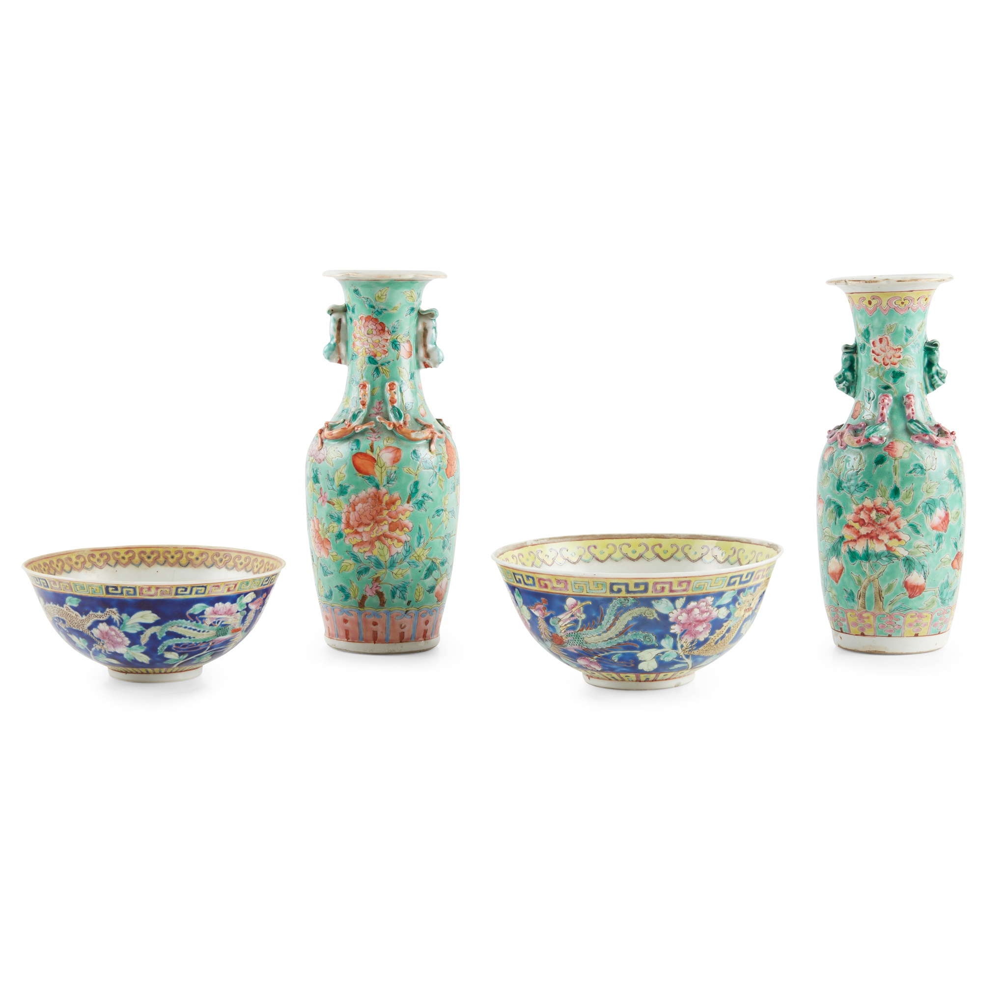 GROUP OF FOUR STRAITS-CHINESE FAMILLE ROSE WARES