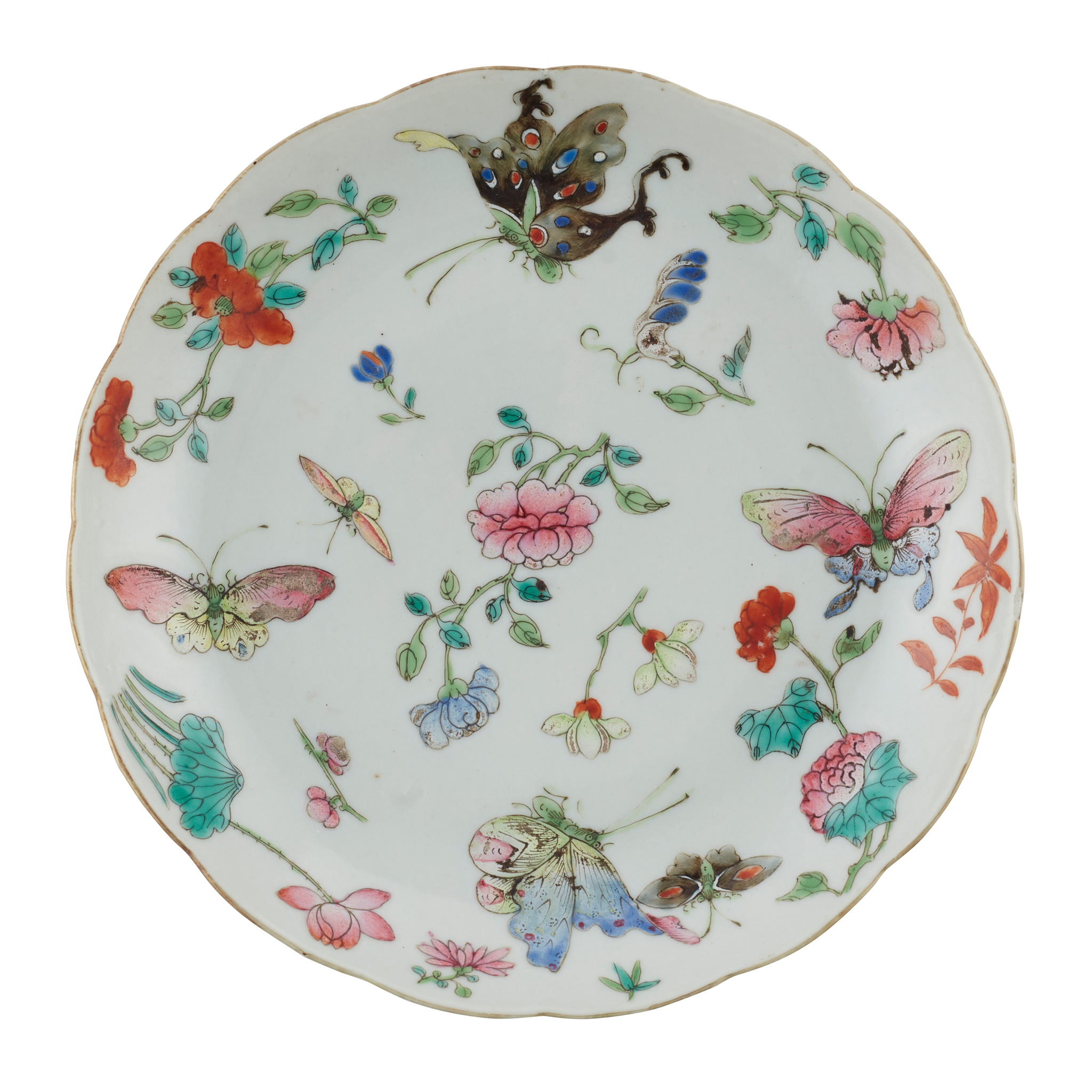 FAMILLE ROSE 'BUTTERFLY AND FLOWER' DISH