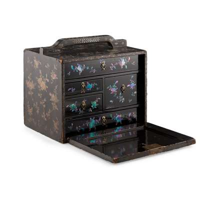 MOTHER-OF-PEARL INLAID BLACK LACQUER CHEST