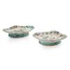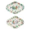 粉彩人物紋高足供碟一對及 題詩秀竹雅石碟帶座一對(共四件)