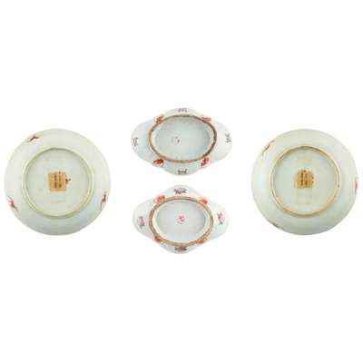GROUP OF FOUR FAMILLE ROSE WARES