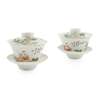 PAIR OF FAMILLE ROSE LIDDED TEACUPS WITH SAUCERS