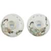 一九二O年 吳少峰款 江西瓷業公司底款 粉彩人物紋茶杯盞連蓋(一對)
