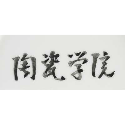 the oval body with a short neck and terminating to a flared rim, one side of the body painted with magpie perching on a branch of plum trees, the other side inscribed with the production year 1986 and month November, attributed to Hu Xian Ya (1902-1996), together with a red seal, the base inscribed with a four-character 'Tao Ci Xue Yuan' mark in ink