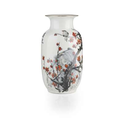 FAMILLE ROSE 'MAGPIE AND PLUM' VASE
