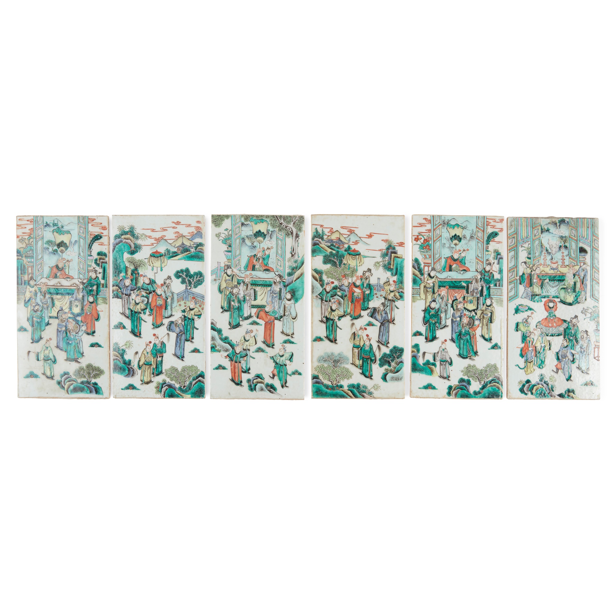 GROUP OF SIX FAMILLE VERTE PORCELAIN PLAQUES