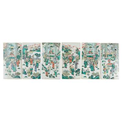 二十世紀 綠彩人物故事紋瓷板(一組六件)