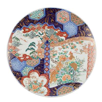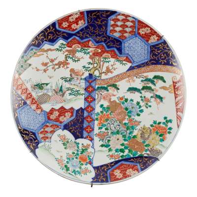 明治 伊萬里燒佛獅及孔雀紋大盤(兩件)