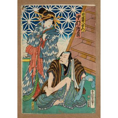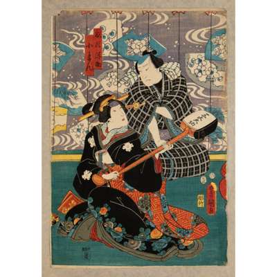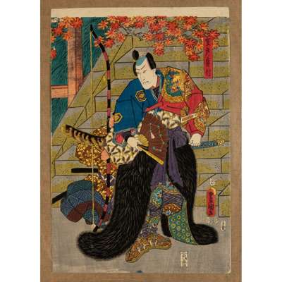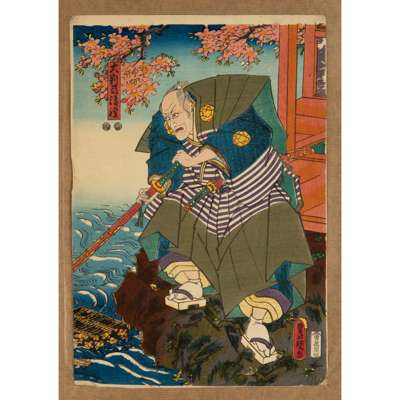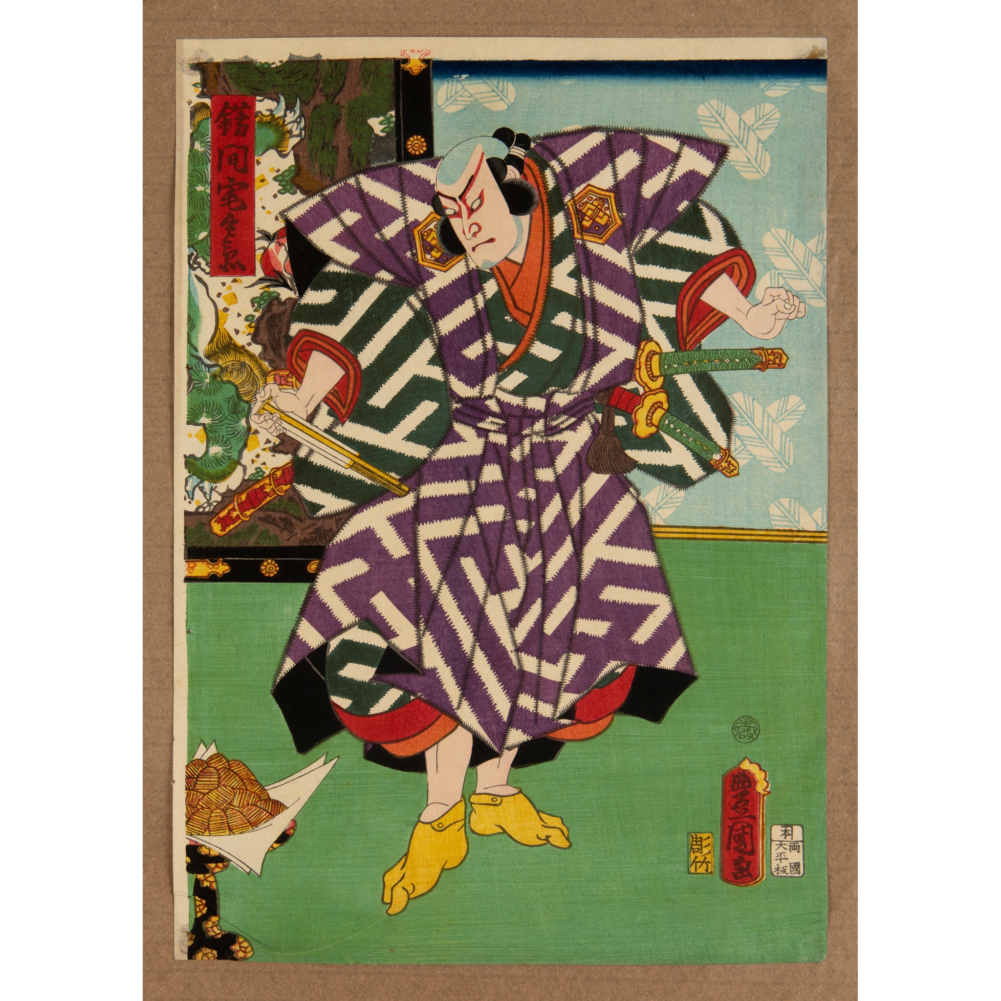 comprising nine oban tate-e prints and one triptych print; including one Ichikawa Ebizô V as Daihanji no Kiyosumi; and one triptych prints in one frame entitled Noda-Tamagawa, Mutsu
