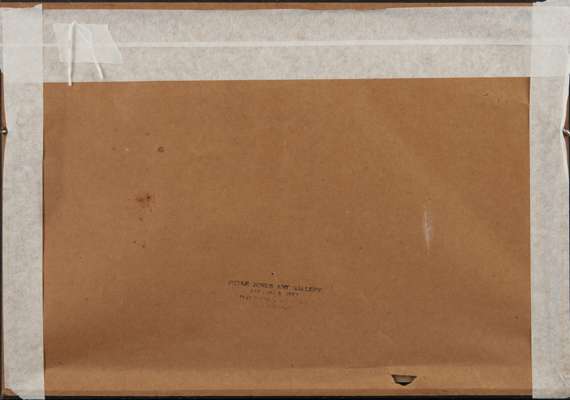 gouache and gold on paper, red border, verso with old stamp Peter Jones Art Gallery