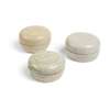 each box with a domed cover impressed with different flower patterns, both the exterior and partial interior covered in a thin, translucent bluish-white glaze with a hint of a greyish tone, leaving the rims and base uncovered, exposing the white porcelain body