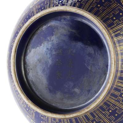 Note: A highly comparable Blue-ground Gilt-decorated Bottle Vase, Guangxu mark and period, was sold by Sotheby's New York, 18 March 2017, lot 1296