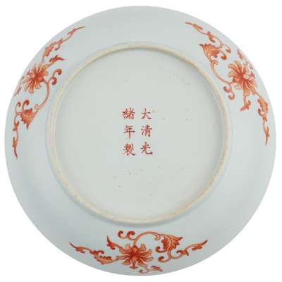 IRON-RED-DECORATED 'DOUBLE DRAGON' PLATE