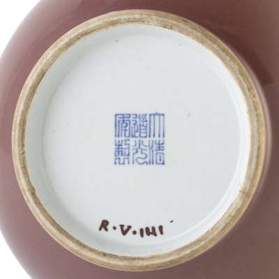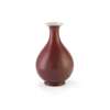 the bulbous sides raised from a slightly everted foot to a waisted neck and flared rim, covered to the exterior with a pale red glaze stopped neatly on the foot, the base inscribed with a six-character Daoguang mark in underglaze blue