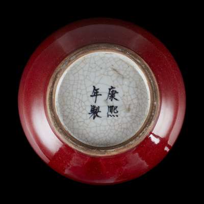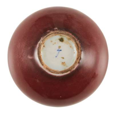 GROUP OF FOUR RED-GLAZED PORCELAIN WARES