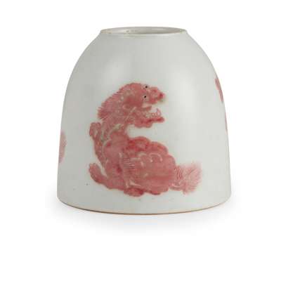 豇豆紅釉瑞獸紋馬蹄式水丞