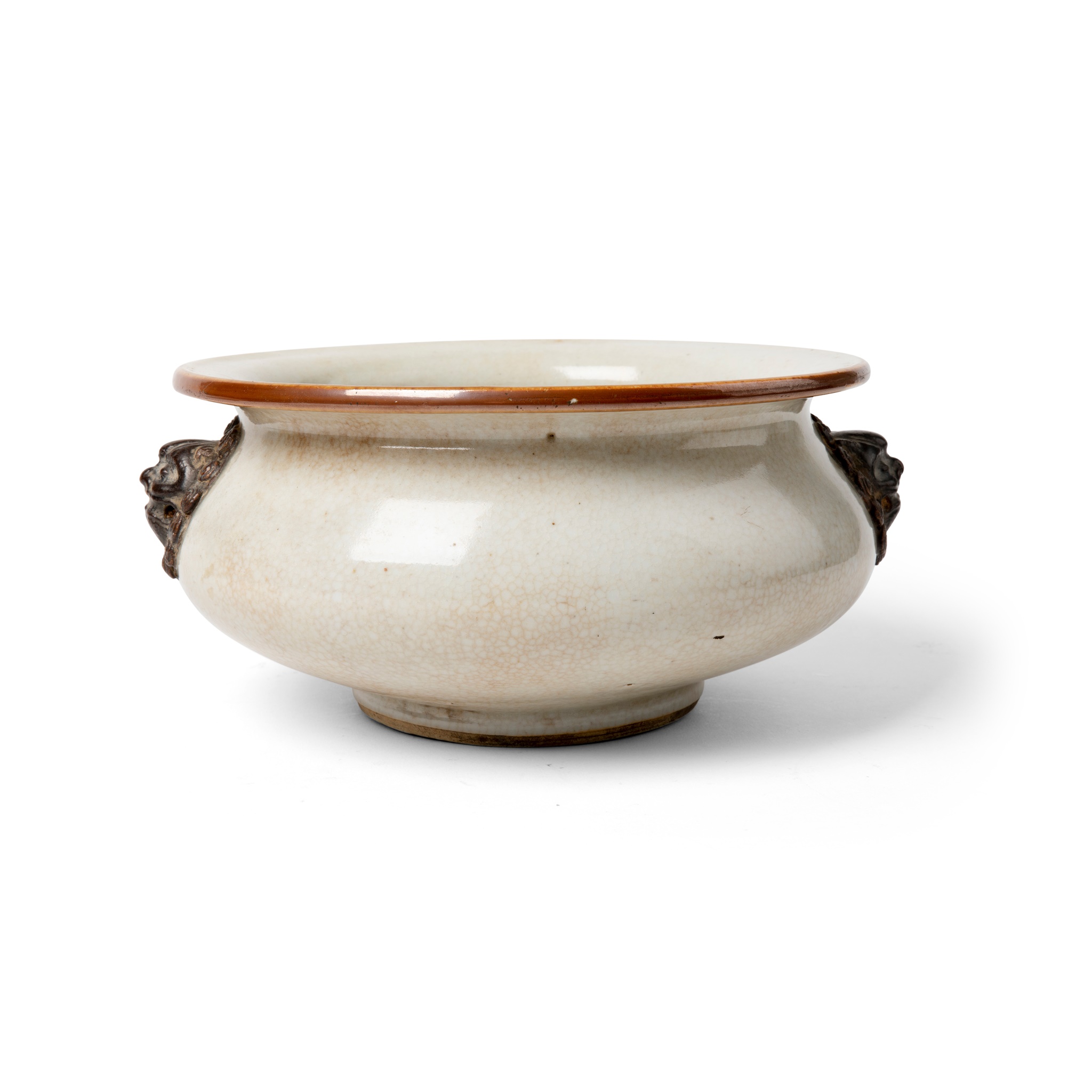 GE-TYPE CRACKLE-GLAZED LION-HEAD CENSER