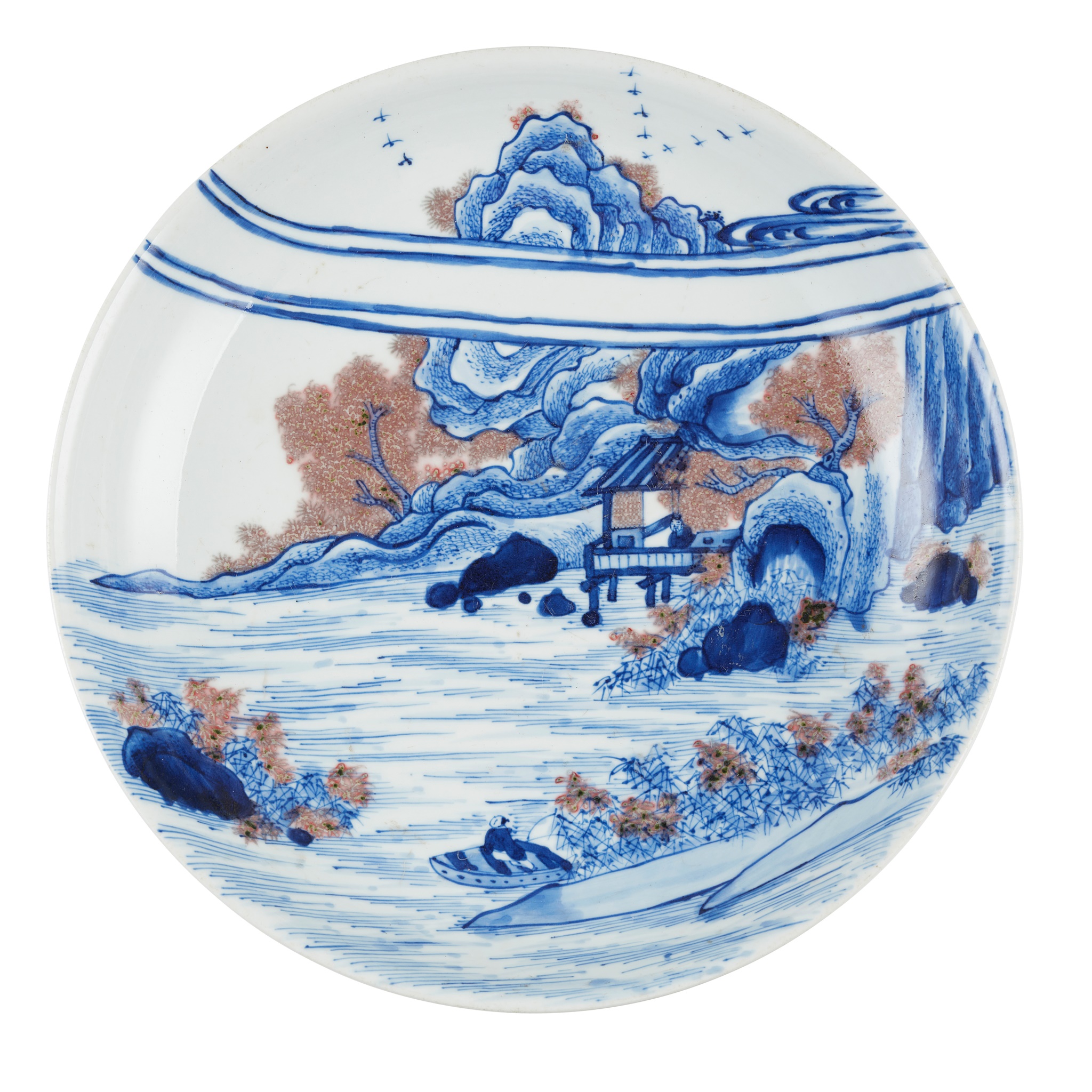 十九至二十世紀 青花釉裏紅山水高士大盤