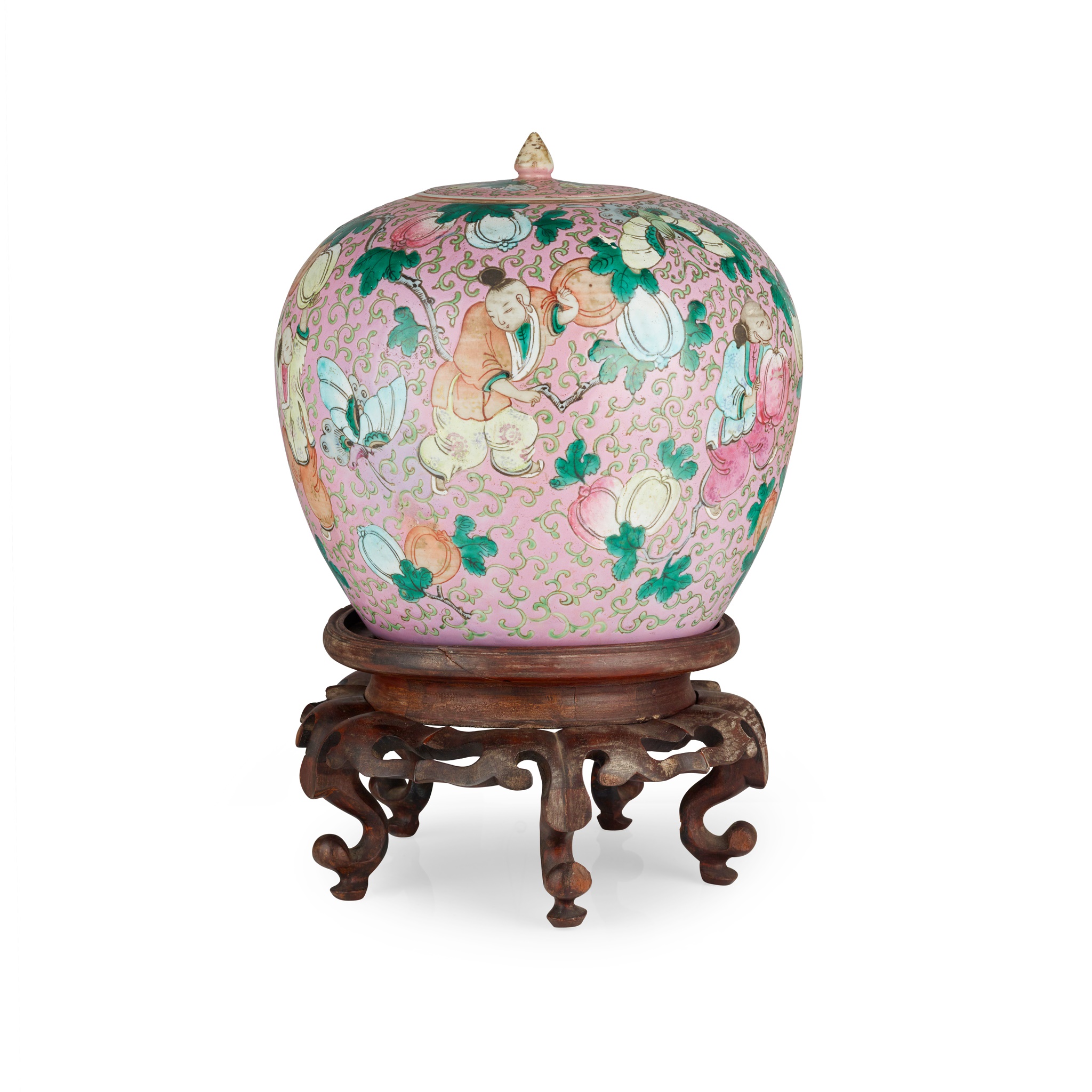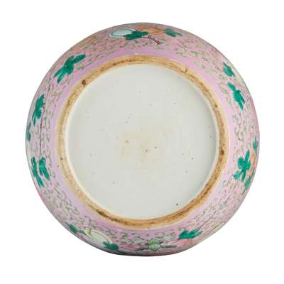 清 粉紅地粉彩童子瓜瓞綿綿紋蓋罐