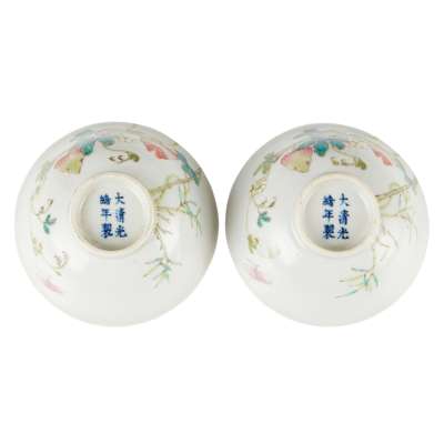 清 光緒款及年代 粉彩瓜瓞綿綿小碗(一對)