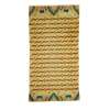 woven with abstract tiger strips in light brown on a honey-gold ground, either end decorated with rocky mountains and crashing waves