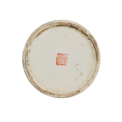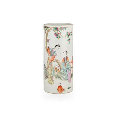 清末民初 榮▢祥款 同治年製底印 粉彩仕女戲嬰圖帽筒