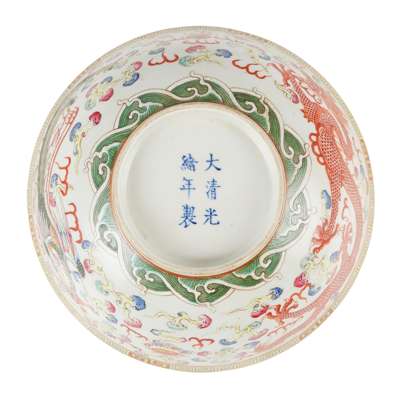 十九至二十世紀 光緒款 粉彩龍鳳呈祥碗