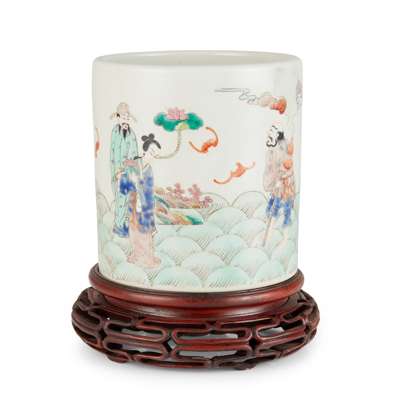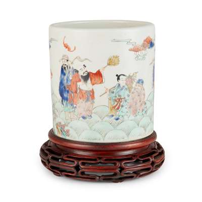 FAMILLE ROSE 'EIGHT IMMORTALS' BRUSH POT