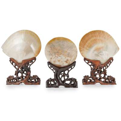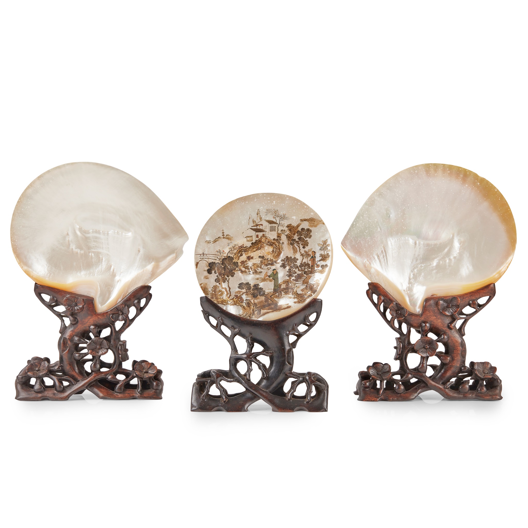 GROUP OF THREE MOTHER-OF-PEARL SHELLS
