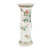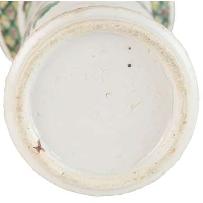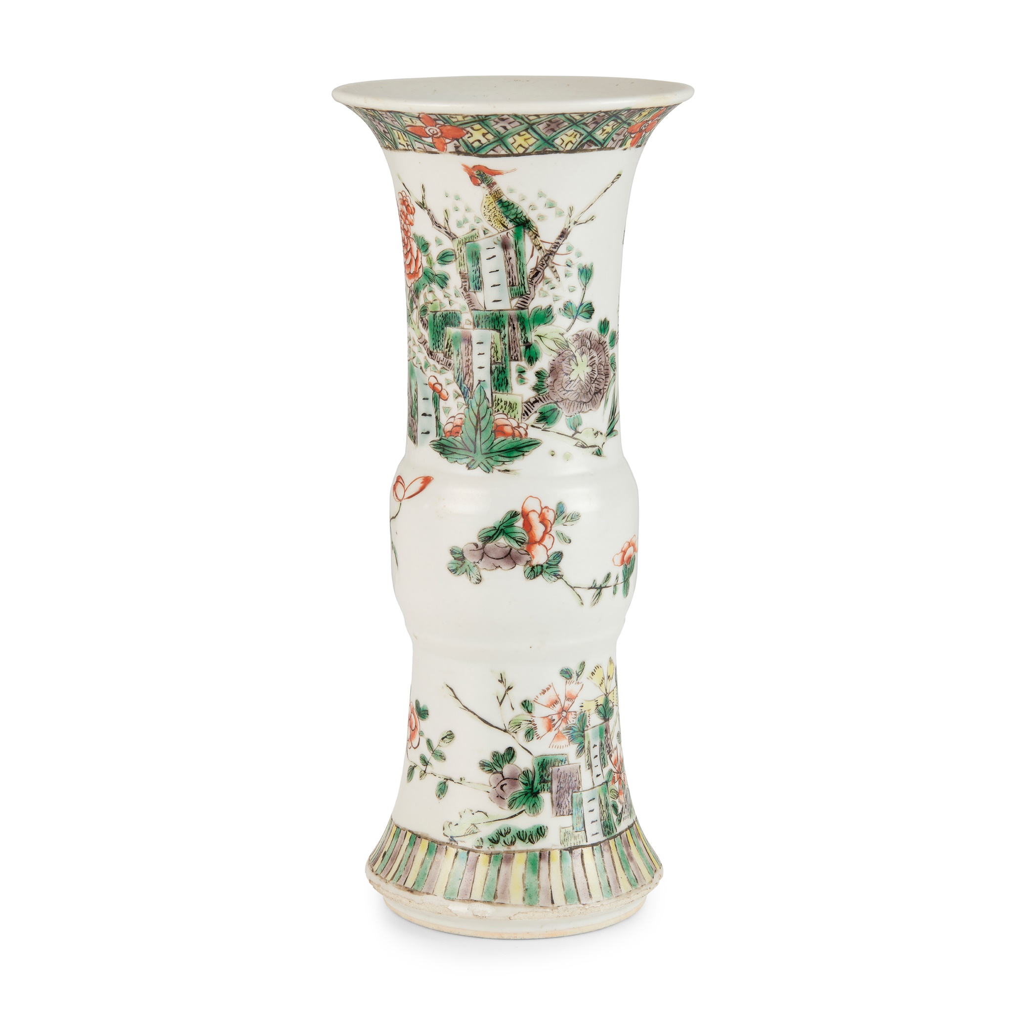 sturdily potted, decorated with floral sprays and rock work on the body, the main decoration on the upper part perched by a bird