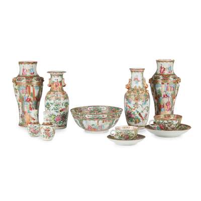 GROUP OF ELEVEN CANTON FAMILLE ROSE WARES