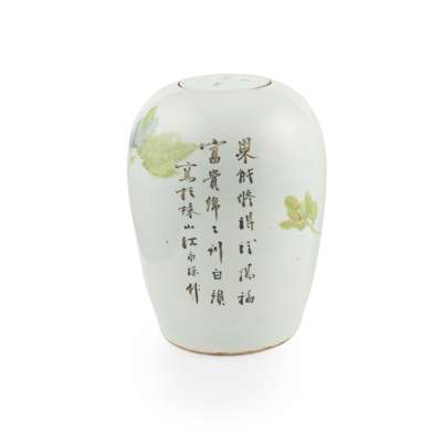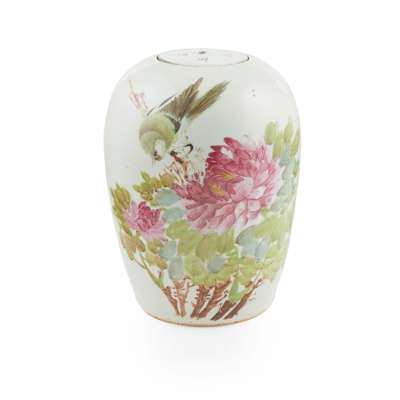 QIANJIANG ENAMELLED 'BIRD AND PEONY' JAR AND COVER