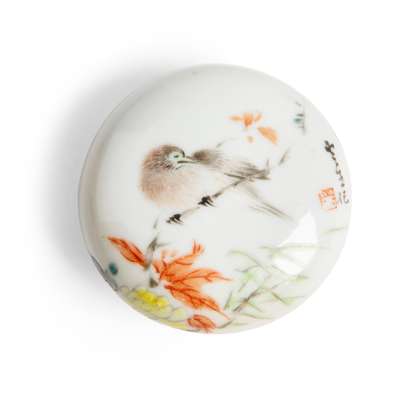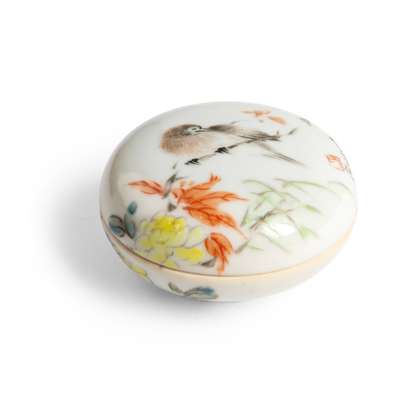 清末民初 雲生款 淺絳彩花鳥紋蓋盒