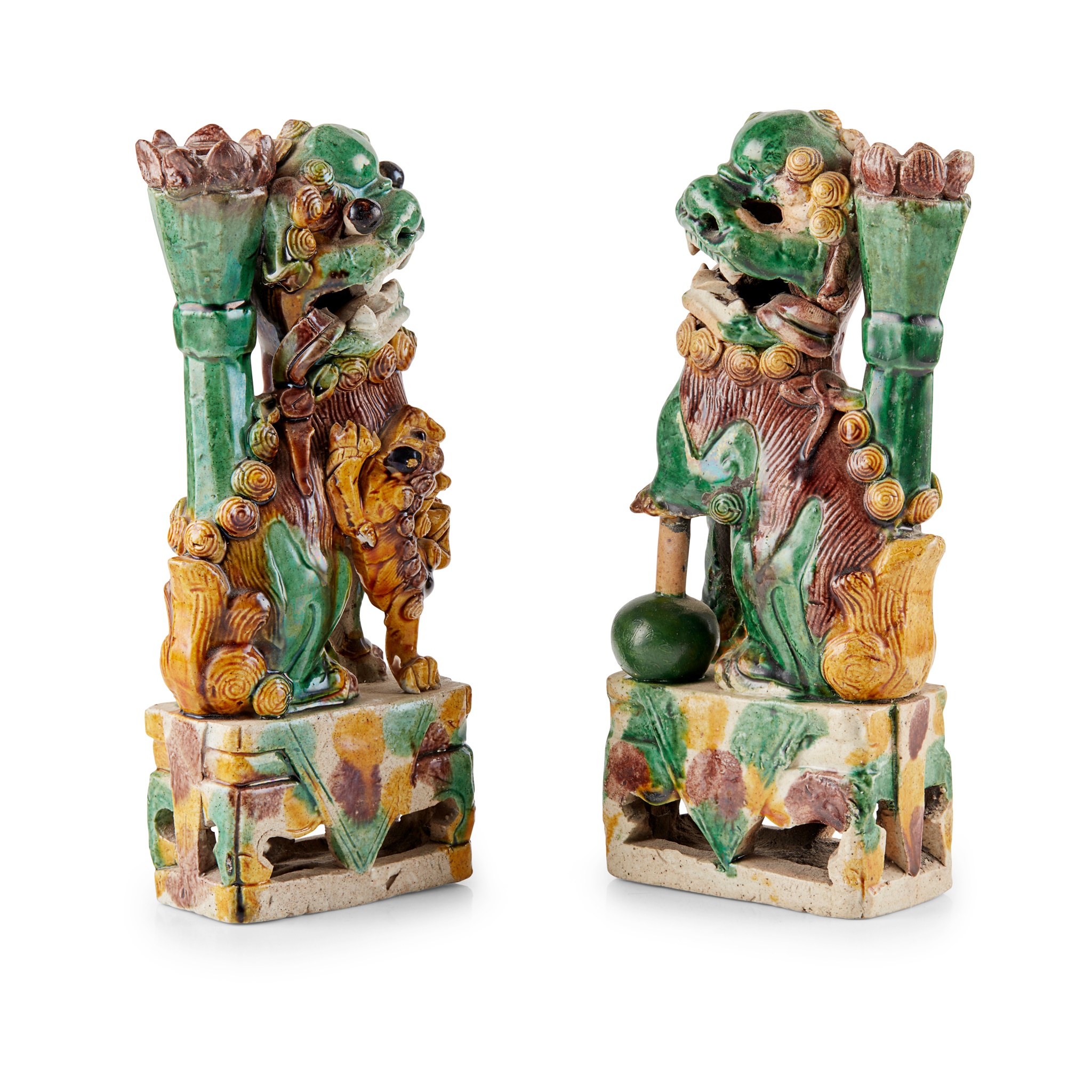 PAIR OF SANCAI-GLAZED JOSS STICK HOLDERS