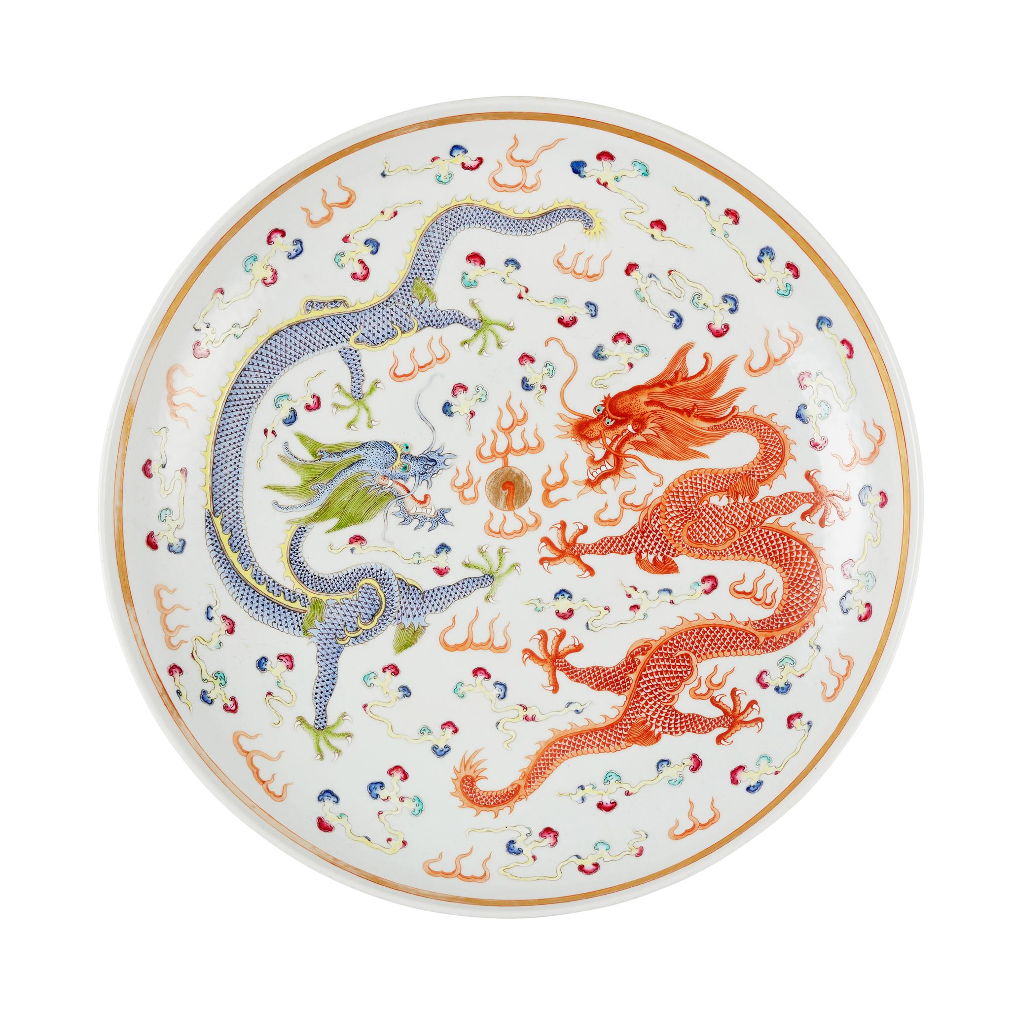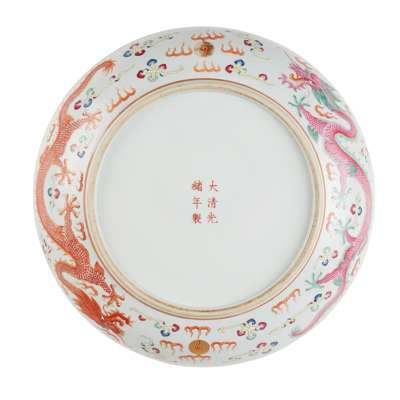 清 光緒款 粉彩雙龍戲珠紋大盤